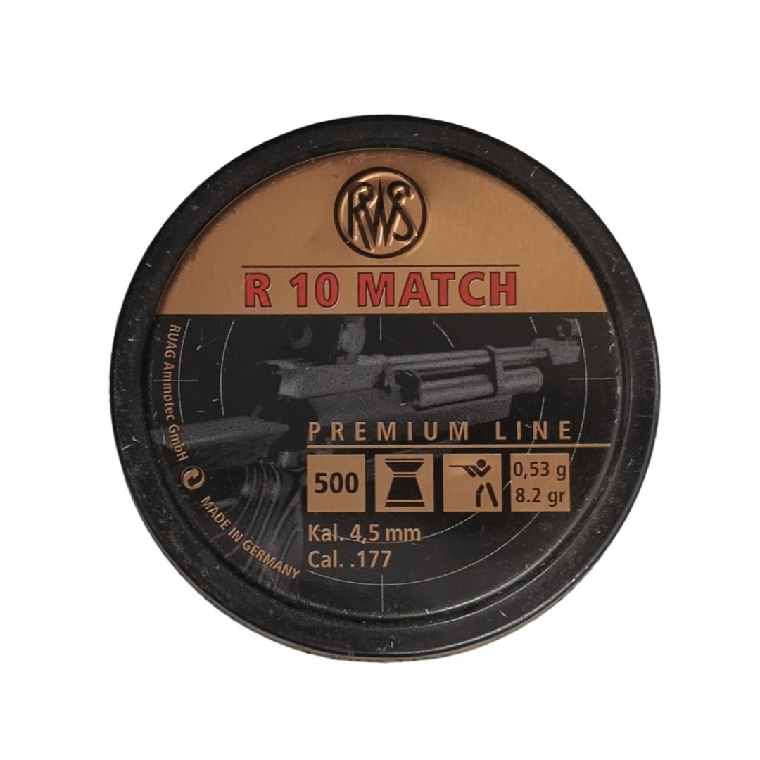 When it comes to **precision .177 pellets in India** for serious target shooting, the **RWS R10 Match 0.177 Cal (0.53g/8.2gr, 500ct)** stands in a class of its own. These premium German-engineered wadcutter pellets from RWS are the “heavy” rifle variant in the legendary R10 Match series – specifically tuned at 8.2 grains for optimal stability and tighter groups in air rifles at 10 meters and beyond. Shooters worldwide, including Olympic competitors, trust them for their razor-sharp accuracy, thanks to ultra-tight production tolerances, optoelectronic inspection, and flawless surface finish that minimizes barrel fouling.